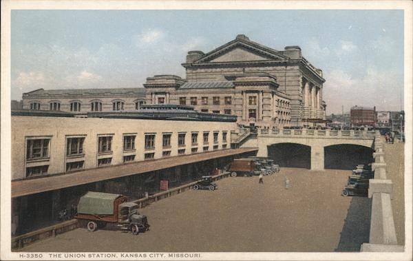 Front: H-3350 THE UNION STATION, KANSAS CITY, MISS OURI. Back: FRED 'PHOSTINT" ARVEY TRADE MARK REG. - V. S. PAT. OFF, MADE ONLY BY DETROIT PUBLISHING CO 81670 THIS SPACE MAY BE USED FOR MESSAGE XXIX