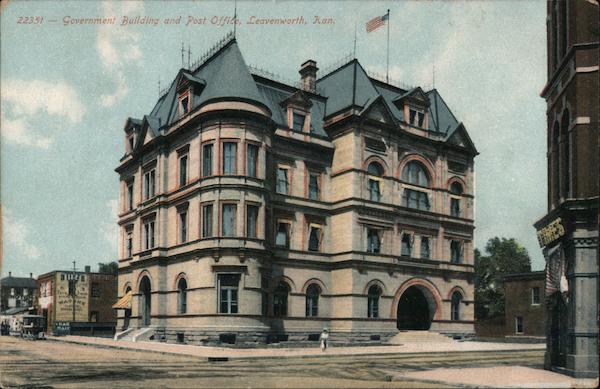 Front: 22351 Government Building and Post Office, Leavenworth, Kan. tere CAR PAIF Back: LEAVEN WORTH, KANSAS en 20. gy