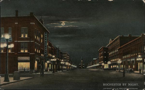 Front: ETRO TAN LOH ** ROCHESTER BY NIGHT. COPYRIGHT 1912 BY GOETTINGS ROCHESTER. HOTE 80AF i Back: me-100 ,50 and Island Possessions Cuba, Canada and MESSAGE MAY BE WRITTEN ON THIS SIDE. R-26899