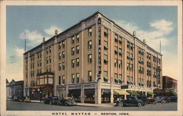 Front: 536 FR CAFE Peztal MAYTAG MAYTAG NEWTON. IOWA (UAPITO HOTE L HAYT AC Back: HOTEL MAYTAG NEWTON, IOWA BEALS LITHO "ART.TONE" 1.25 10 AT 1038 (LITHOGRAPHED IN U. S. A.) DES MOINES, IOWA "A Good Place to Stay"