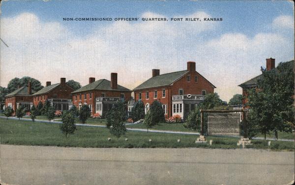 Front: NON-COMMISSIONED OFFICERS' QUARTERS, FORT RILEY, KANSAS Back: THOMAS 1801-1809 3 CENTS 3 32494 Published by P. K. News Distributors, Junction City, Kansas-