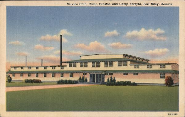 Front: Service Club, Camp Funston and Camp Forsyth, Fort Riley, Kansas 1 B-H975 Back: DISTRIBUTED BY P. K. NEWS COMPANY, JUNCTION CITY, KANSAS
