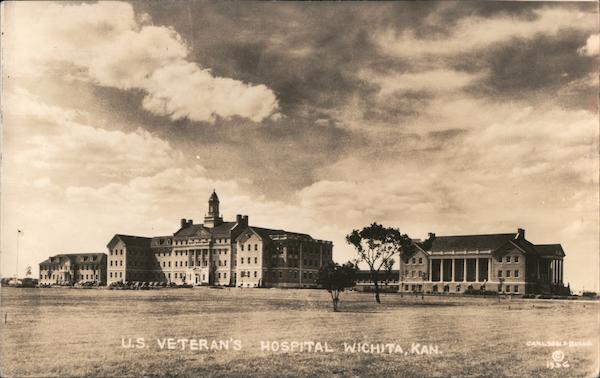 Front: U.S. VETERAN'S HOSPITAL WICHITA, KAN. CARLSON 44444449 Back: KS #38 A A zoa 359 POST NG HAD KANS Mrs. Alina 17 PARAM 1935 2 STAMP3 ADDosas guan nec Wichita kans gris an pero hynod for posible to get home as ken Wanneapolis Kansas لے nou