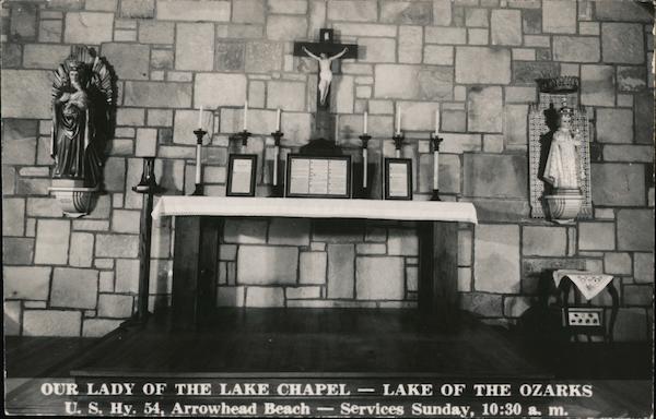 Front: & IN OUR LADY OF THE LAKE CHAPEL – LAKE OF THE OZARKS U. S. Hy. 54, Arrowhead Beach – Services Sunday, 10:30 a. m. Back: 4- DUIT PLASS