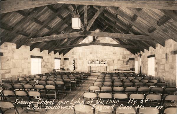 Front: Interior Chapel our Lady of dhe Lake Hy. 54 2 md south westof Basnelt Dam Mo, Back: 9-B-27 ALL RIGHTS RESERVED ------THELL. COOK CO., MILWAUKEE
