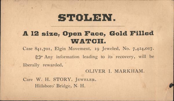 Case 841,701, Elgin Movement, 19 Jeweled, No. 7,424,017.