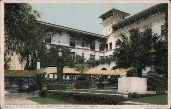 Front: 13660 ENTRANCE TO HOTEL MARYLAND. PASADENA CALIFORNIA COPR. DETROIT PUBLISHING CO. Back: TRADE MARK - MEG.U.S. PAT. OFF. MADE ONLY BY DETROIT PUBLISHING. CO کد 2,50 FOREIGN, WO THIS SPACE MAY BE USED FOR MESSAGE.