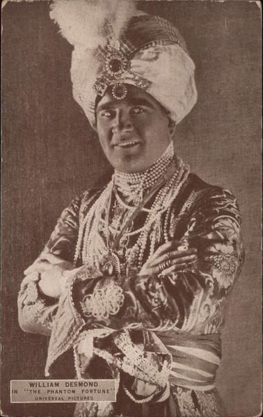 Front: WILLIAM DESMOND IN THE PHANTOM FORTUNE UNIVERSAL PICTURES Back: MADE IN U. S. MANUFACTURED BY EXHIBIT SUPPLY CO., CHICAGO, ILL.