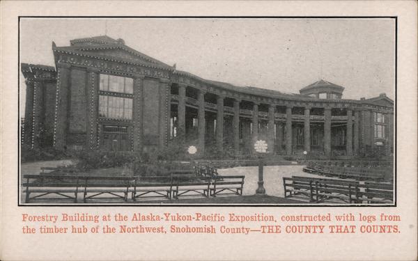 Forestry Building at the Alaska-Yukon-Pacific Exposition, constructed with logs from