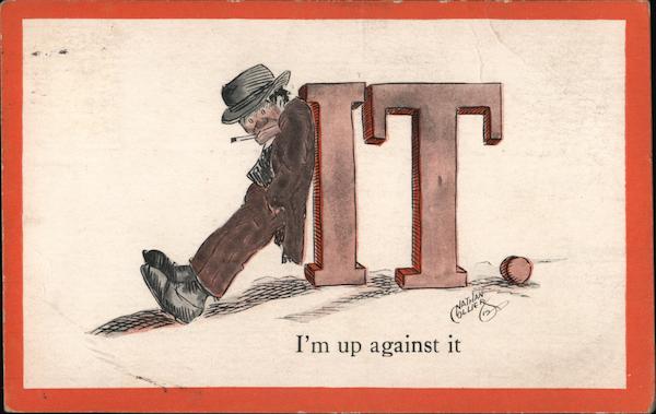 Front: 770 I'm up against it Back: & POST-GARDS SA T.P. & CO. 1913 ILL: C- Hallo Bay Mre Dace Brudy La Are you not ma han me con Lithum oll Lind T. P. Red Border Series 892