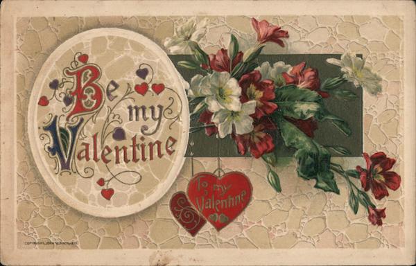 Front: mye alentine my Valenhng COPYRIGHT, JOHN WINSCHiS10) Back: R POST CARD. ] DE ON THIS SIDE. D. Mus Clare stauft from. 134 284 st Fred B. dington ny