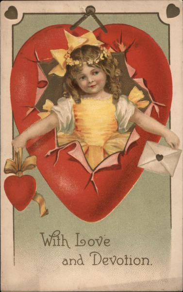 Front: With Love and Devotion. Back: ART PUBLISHING CO WOLLYWABLE No. 951 TAROS NEW-YORK BERUN llis's Kachauni klinder esy Broodh tily