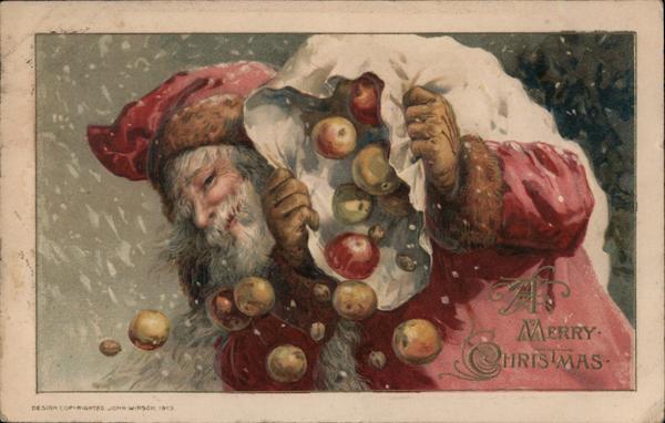 Front: MERRY HRISMAS DESIGN COPYRIGHTED.JOHN WINSCH. 1913. Back: JOW! D D OO THE ADDRESS TO BE WROTEN ON THIS SIDE Merry Xmas Wish spea Mastir L. Blindquist gr. ith ke & 4 Carroll CAMICE gera