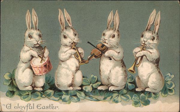 Front: G Joyful Easter. 59 Back: AUTHORIZED BY ACT OF CONGRESS OF MAY 19.1898. THE INTERNATIONAL ART PUBLISHING CO. NEW YORK Happy Ezetes to Marguerite From aut Veltie.