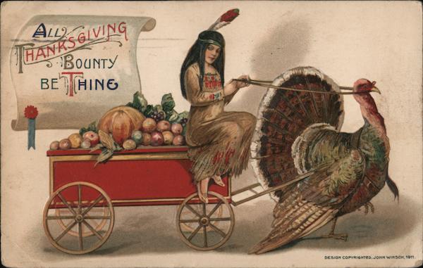 Front: THANKSGLVING BOUNTY BE HING DESIGN COPYRIGHTED,JOHN WINSCH, 1911. Back: алл OSTAGE POSTOELAARD INOV 22 Nado HIA, -PENN. SQUARES PA THE ADDRESSEN ONS SES. 1910 lelta Bunkenjozel gun a fost land- Frank and you 13. Ele Hummelslund na
