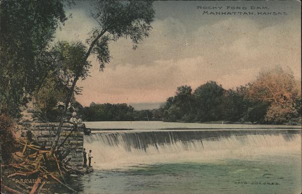 Front: ROCKY FOR D DAe, MANH ATTAN, KAN SAS. TELEM IN RHARM HAND COLORED, Back: meo75 739 DOMESTIC. 1c. FOREIGN. 20. THE ALBERTYPE CO. BROOKLYN, N. Y.