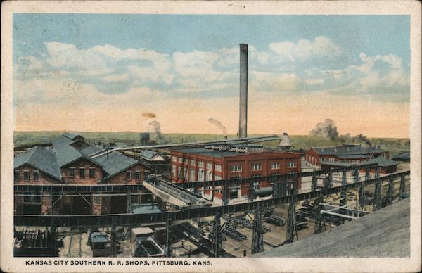 Front: KANSAS CITY SOUTHERN R. R. SHOPS, PITTSBURG, KANS. Back: oo R-64424 ST ON NT 2 ๊ทธ time KANS am having At it is aurful ms 2. Men cold here kill be home Sunday 42 80 Minchester Cut Kiss Francis 1 me. mo, Mr Holland ART Kansas Cite Eu