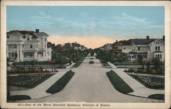 Front: 421-One of the Many Beautiful Residence Districts of Seattle. Back: Published by Leland Lund, Tacoma, Wash.-Made in U. S. A. TACOMA 16143 JKC 2,00 CO