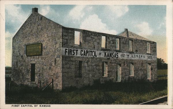 Front: TIS BULDING ARST CAPITOL TERTORY S RANSAS FIRST CAPITOL OF KANSAS. JULY T 2.11.5 4 6 055 FIRST CAPITOL OF KANSAS Back: 1.50 Posterd PEACE COMMERCIALCHROME 8108