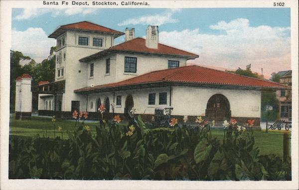 Front: Santa Fe Depot, Stockton, California. 5102 111 "781 Back: Place the Stamphere and Island Possessions Cuba, Canada and PACFIC NOVELTY CO. SAN FRANCISCO & LOS ANGELES