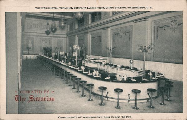 THE WASHINGTON TERMINAL COMPANY LUNCH ROOM, UNION STATION, WASHINGTON, D.C. OPERATED BY + The Savarins COMPLIMENTS OF WASHINGTON'S BEST PLACE TO EAT