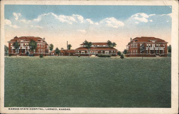 Front: KANSAS STATE HOSPITAL, LARNED, KANSAS. Back: RPO 100 R-60413 BLANUN co 27 21616- f TRG ROARD comercpm francesca amoy m pny pro bution beloop aleurel an Tip. doir hus gr causfied sr helbesville 285 Zusrsr ۲ Ref. Chaises eloon