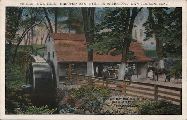 Front: YE OLD TOWN MILL. ERECTED 1650. STILL IN OPERATION. NEW LONDON, CONN. WIARD PIOPS YE OLD TOWN MILL, ERECTED 1650 STILL IN OPERATION, NEW LONDON, CONN 217130 Back: Pub. by Ju Solomon, New London, Conn. J.S.