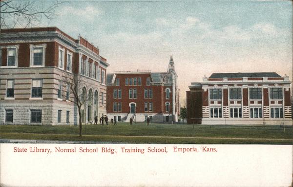 Front: State Library, Normal School Bldg., Training School, Emporia, Kans. Back: (54290) 350 No. 987. New York, 488.