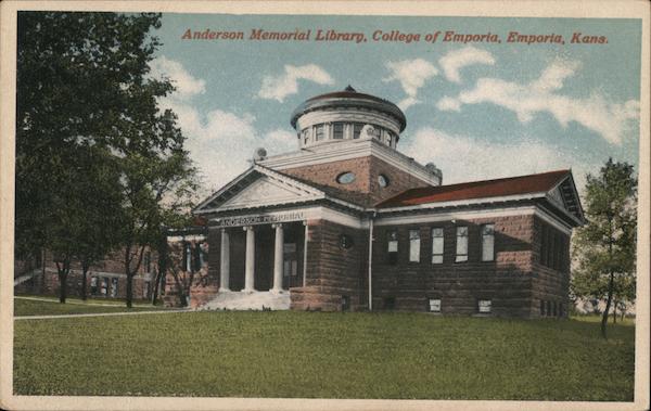 Front: Anderson Memortal Library, College of Emporia, Emporia, Kans. ANDERSON MEHORIAL Back: 41461-PUB. BY ECKDALL & MCCARTY, EMPORIA, EMPORIA, KANS. со стосHROMEл sh al