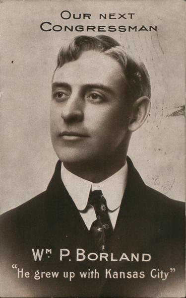 Front: OUR NEXT CONGRESSMAN WM P.BORLAND CC He grew up with Kansas City" Back: UNITEDSTATES OF (PANCA AANSAS 08 MO 1206 FRANKLIN 1790 W. P. Faulkuer 208 8 Jackson bety