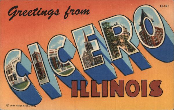 Front: Greetings from G-191 CERO HLINOIS © CURT TEICH & CO. INC. Back: AERO DISTRIBUTING CO., INC., CHICAGO, ILLINOIS SELECTED VIEWS OF CICERO, ILLINOIS OC-H1770 Quero