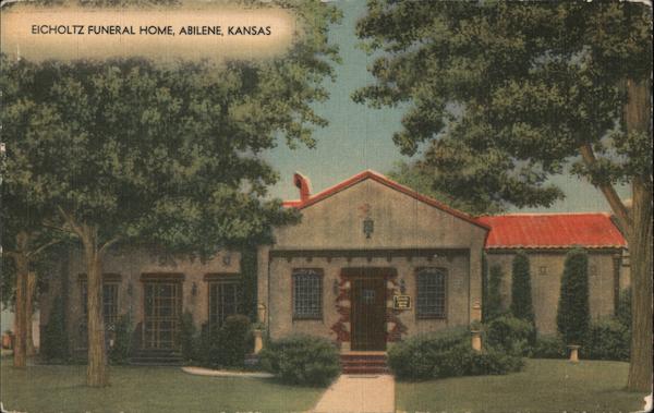 Front: EICHOLTZ FUNERAL HOME, ABILENE, KANSAS Back: 8093 LESLIE G. RASHER -- FRANK H. HOOVER Funeral Directors. 357 300 MWM Color- Litho "Bursheen" Finished, Made Only By MWM - Aurora , Mo. MWM