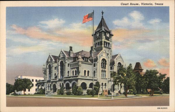 Front: Court House, Victoria, Texas IB-H2003 Back: COURT HOUSE, VICTORIA, TEXAS Victoria County Court House, with the new jail in the left background. GULF COAST NEWS, VICTORIA, TEX.