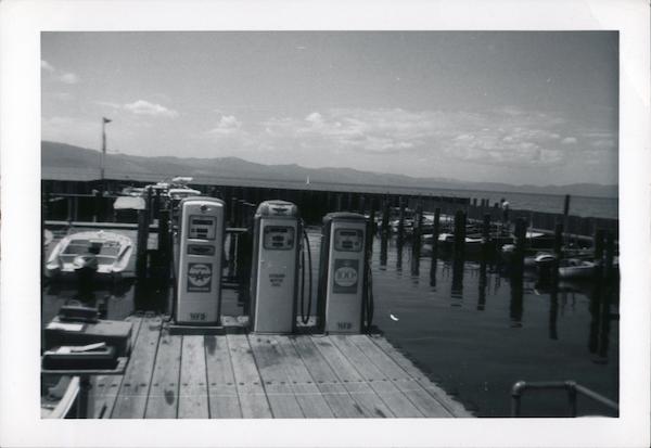 Front: FAVING 100 OUTROARD MOTOR FUEL 8CTANE GABOLINE YAYIO TAYI Back: yacht Fourth Shore Tahoe 1964 Jonly 07