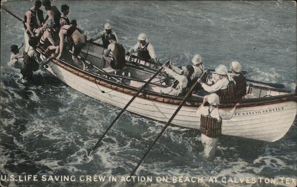 Front: PE SAVI NG SER ICE U.S.LIFE SAVING CREW IN ACTION ON BEACH AT CALVESTON TEX Back: QUALITY SUPERIOR C9 No. 3308