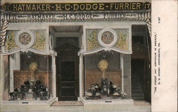 Front: (17 HATMAKER-H C DODGE-FURRIER 17 HATMAKER.H.C.DODGE FURRIER, AAAAARJA DO# "THE FINEST HAT EMPORIUM IN AMERICA," H. C. DODGE, HARRISBURG, PA. 1187 Back: H922 st Бет ST Me he a IC 20 George V. Millar & Co., publishers, Scranton, Pa.