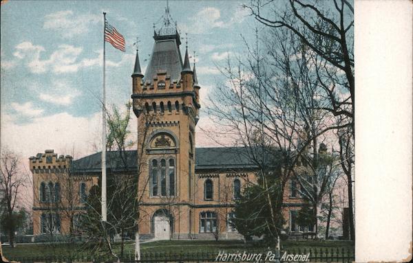 Front: 1874 Harrisburg, Pa. Arsenal. Back: One Cent for United States, and Island Possessions, Cuba, Canada and THE HUGH C. LEIGHTON CO.MANUFACTURERS, PORTLAND, ME.,U.S.A.PRINTED IN FRANKFORT%AIN,GERMANY 2112