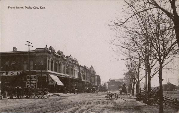 Front: Front Street, Dodge City, Kan. ODS.SHOES *HE BA GAIN Si PRE MNG Back: FOREIGN, TWO Cincinnati, o. "Glacé Published by Fred Harvey Tom Jones سے