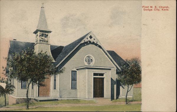 Front: First M. E. Church, Dodge City, Kans. Back: LEIPZIG, BERLIN DRESDEN BLITHO-CHROMEC TRADE-MARK: United States and Island Possessions, Cubs, Canada and For all other Countries No. C 5796 Pablished by Rath & Bainbridge, Dodge City, Kans. 124362