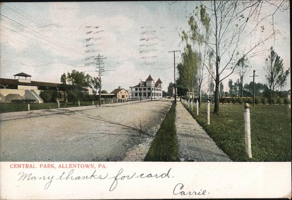 Front: CENTRAL PARK, ALLENTOWN, PA. Many thanks foveard. Carrie Back: #2 $1,50 Plausthaften, dere GTOWN NERKEN 10 UNITED STATES OF Post Care. SEP 6 3-PM PA. 1706 FRANKLIN 1790 1907 Mr. Henry B. Lesher, Jonestown Leblo