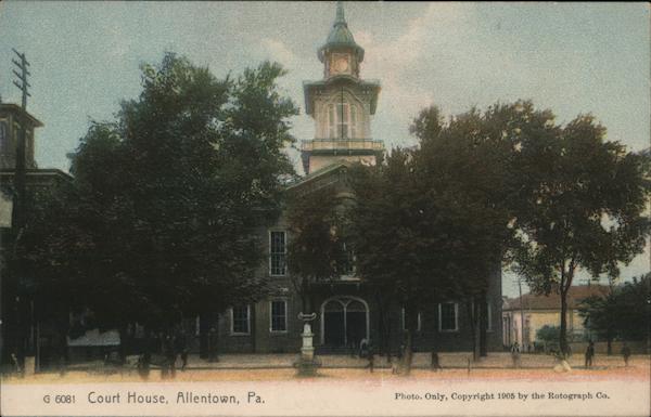 Front: G 6081 Court House, Allentown, Pa. Photo. Only, Copyright 1905 by the Rotograph Co. Back: #2 3 SERIES 1902 TED STATES OF 'ABR 1706 FRANKUN1790 The Rotograph Co., N. Y., City. (Germany) Miss Needa Dillinger Dillingersville Pa.