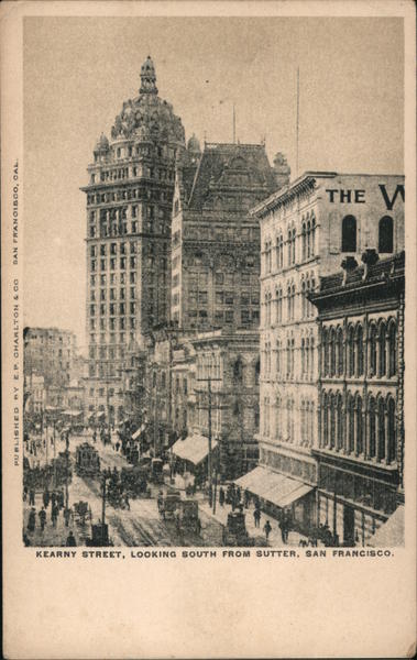 Front: SAN FRANCISCO, CAL. BY E.P. CHARLTON & CO PUBLISHED KEARNY STREET, LOOKING SOUTH FROM SUTTER, SAN FRANCISCO. Back: 350 FOR THE ADDRESS.