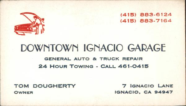 (415) 883-6124 (415) 883-7164 DOWNTOWN IGNACIO GARAGE GENERAL AUTO & TRUCK REPAIR 24 HOUR TOWING - CALL 461-0415 TOM DOUGHERTY 7 IGNACI O LANE OWNER IGNACIO, CA 94947