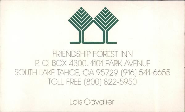 FRIENDSHIP FOREST INN P. O. BOX 4300, 1101 PARK AVENUE SOUTH LAKE TAHOE, CA 95729 (916) 541-6655 TOLL FREE (800) 822-5950 Lois Cavalier