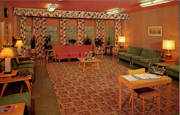 DML-3 DR. MARTIN LUTHER COLLEGE New Ulm, Minn. Reception Room of Centennial Hall Ektachrome by Bob Wyer, Delhi, N. Y. All rights reserved. Bob Wyer Photo Cards, Delhi, N. Y. C-22469 HERE