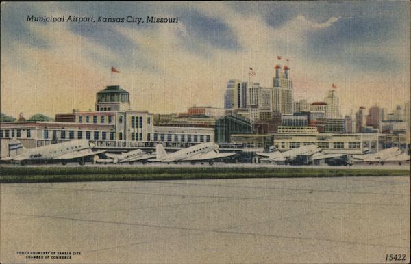Front: Municipal Airport, Kansas City, Missouri ***** PHOTO COURTESY OF KANSAS CITY 15422 CHAMBER OF COMMERCE Back: A "COLOURPICTURE" PUBLICATION, BOSTON 15. MASS., U'S. A. SOLD BY MAX BERNSTEIN, KANSAS CITY. MISSOURI