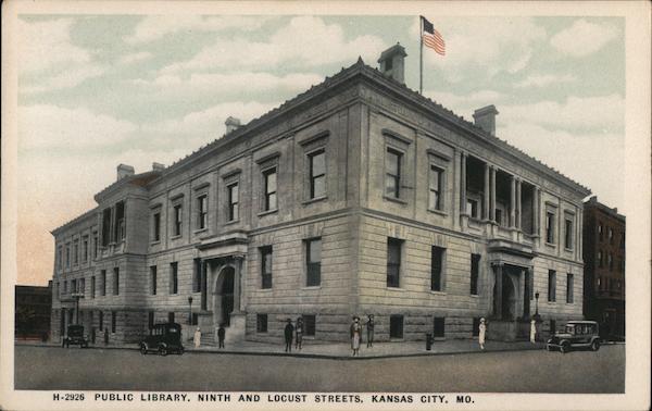 Front: H-2926 PUBLIC LIBRARY, NINTH AND LOCUST STREETS, KANSAS CITY, MO. Back: Feed ARVEY COMMERCIALCHROME 57513 Coo