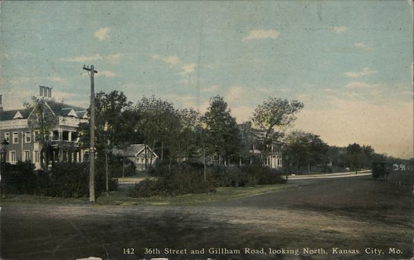 Front: 142 36th Street and Gillham Road, looking North, Kansas City, Mo. Back: co ELITE Co and Island Possessions Cuba, Canada and MESSAGE MAY BE WRITTEN ON THIS SIDE. A-16669