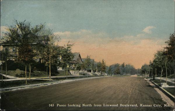 Front: imio 143 Paseo looking North from Linwood Boulevard, Kansas City, Mo. Back: ELITE Co. K. MADE IN U. S A. and Island Possessions | Cuba, Canada and MESSAGE MAY BE WRITTEN ON THIS SIDE, A-16670 1.00