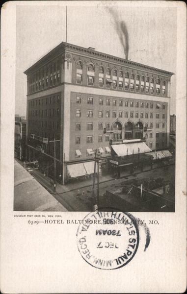 Front: 6529-HOTEL BALTIMORE,GOKNSKAITY, MO. Woe, ST. 1934 WNIW ST.PAU Back: 15 TATESO KANSAS DEC PA tc Postura M190 1706 FRANKLIN 1790 THIS S!DE FOR THE ADDRESS ho Hier ten nghe Ffis ünqur and ලදීත් Mini